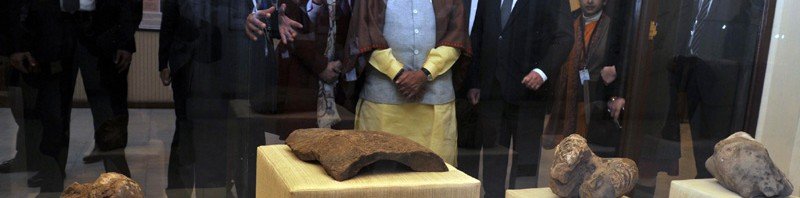The Prime Minister, Shri Narendra Modi and the President of France, Mr. Francois Hollande visiting the Government Museum & Art Gallery, in Chandigarh on January 24, 2016.