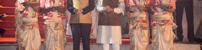 The Prime Minister, Shri Narendra Modi and the Prime Minister of Japan, Mr. Shinzo Abe offering prayers during the Ganga Aarti at Dashashwamedh Ghat, in Varanasi, Uttar Pradesh on December 12, 2015.