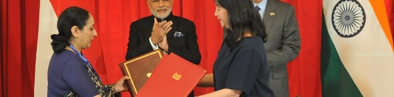 The Prime Minister, Shri Narendra Modi and the Prime Minister of Singapore, Mr. Lee Hsien Loong, during the signing ceremony, in Istana, Singapore on November 24, 2015.