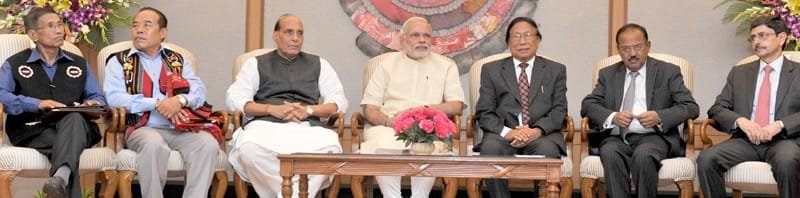 The Prime Minister, Shri Narendra Modi at the signing ceremony of historic peace accord between Government of India & NSCN, in New Delhi on August 03, 2015. The Union Home Minister, Shri Rajnath Singh and other dignitaries are also seen