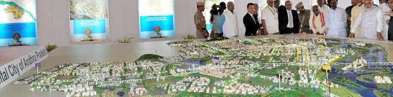 The Prime Minister, Shri Narendra Modi being briefed about ‘Layout Plan of Amaravathi City’ – the new Capital of Andhra Pradesh on October 22, 2015. The Union Minister for Urban Development, Housing and Urban Poverty Alleviation and Parliamentary Affairs, Shri M. Venkaiah Naidu, the Union Minister for Civil Aviation, Shri Ashok Gajapathi Raju Pusapati, the Chief Minister of Andhra Pradesh, Shri N. Chandrababu Naidu, the Chief Minister of Telangana, Shri K. Chandrashekar Rao and other dignitaries are also seen.