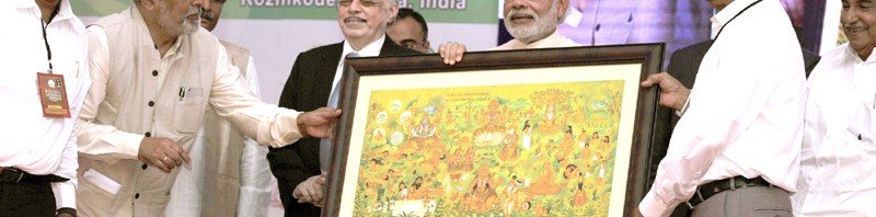 The Prime Minister, Shri Narendra Modi being presented a memento at the Global Ayurveda Festival, in Kozhikode, Kerala on February 02, 2016. The Governor of Kerala, Justice (Retd.) P. Sathasivam, the Chief Minister of Kerala, Shri Oommen Chandy and other dignitaries are also seen.
