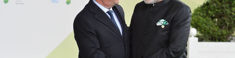 The Prime Minister, Shri Narendra Modi being received by the President of France, Mr. Francois Hollande, on his arrival for the UNFCCC Climate Conference, in Paris, France on November 30, 2015.