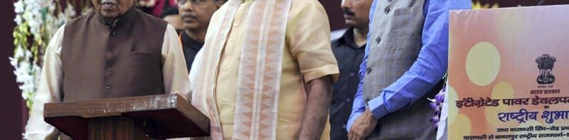 The Prime Minister, Shri Narendra Modi launching the Integrated Power Development Scheme, at DLW Ground, Varanasi on September 18, 2015. The Governor of Uttar Pradesh, Shri Ram Naik and the Minister of State (Independent Charge) for Power, Coal and New and Renewable Energy, Shri Piyush Goyal are also seen.