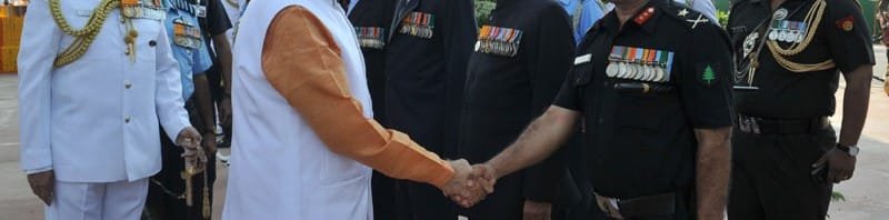 The Prime Minister, Shri Narendra Modi meets war veterans of 1965, during the paying homage ceremony to the brave soldiers, who devoted their lives to the nation & fought bravely in 1965, at Amar Jawan Jyoti, India Gate, in New Delhi on September 22, 2015. The Chief of Naval Staff, Admiral R.K. Dhowan and the Chief of the Air Staff, Air Chief Marshal Arup Raha are also seen.