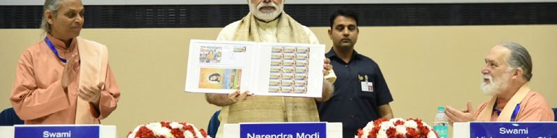 The Prime Minister, Shri Narendra Modi releasing the Special Commemorative Postage Stamp on 100 years of Yogoda Satsang Math, at Vigyan Bhawan, in New Delhi on March 07,