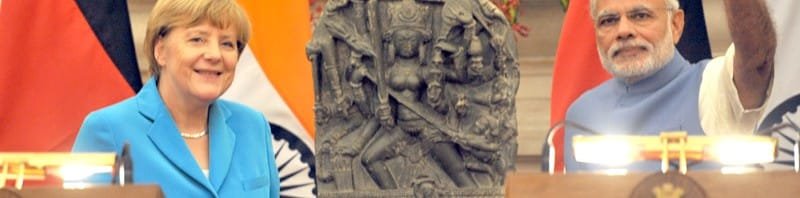 The Prime Minister, Shri Narendra Modi with the German Chancellor, Dr. Angela Merkel, at..