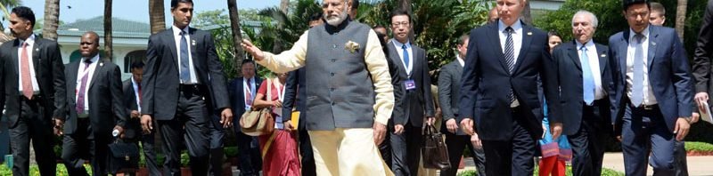The Prime Minister, Shri Narendra Modi with the President of Russian Federation, Mr. Vladimir Putin and the President of the People’s Republic of China, Mr. Xi Jinping, at the BRICS Summit-2016, in Goa on October 16, 2016.