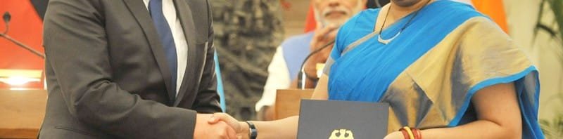 The Prime Minister, Shri Narendra Modi witnessing the exchange of agreements, at Hyderabad House, in New Delhi