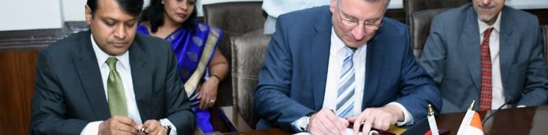 The Secretary, Department of Heavy Industry, Dr. R.S. Katoch witnessing the signing of a framework memorandum of understanding (MoU) between the Department of Heavy Industries (DHI), Govt. of India and Fraunhofer, Germany, in New Delhi on October 05, 2015