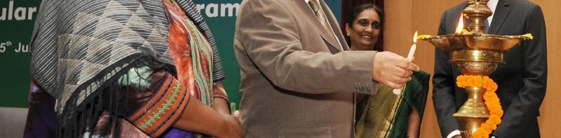 The Secretary, Ministry of Agriculture and Farmers Welfare, Shri S.K. Pattanayak lighting the lamp to launch the “Feed the Future – India Triangular Training Program”, in New Delhi on July 25, 2016.