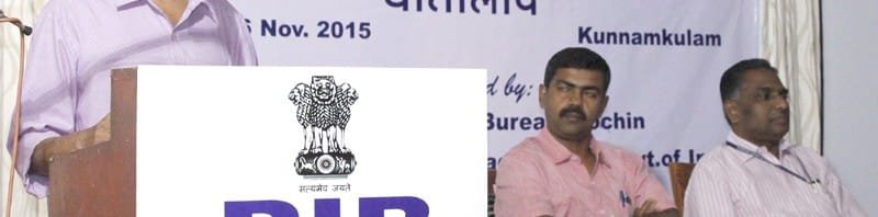 The Senior Journalist, Columnist and former Chairman, Kerala Media Academy, Shri N. P. Rajendran addressing at the inauguration of the Regional Media Workshop (Vartalap), organised by PIB, Cochin, at Kunnamkulam, Thrissur District of Kerala on November 26, 2015.