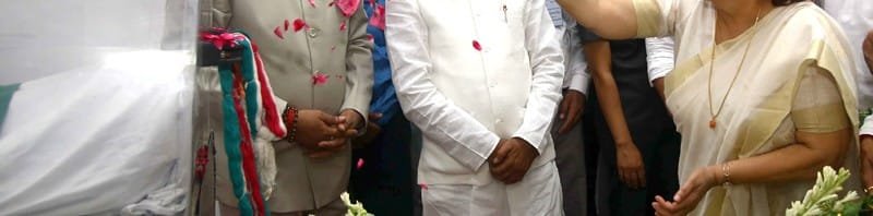 The Speaker, Lok Sabha, Smt. Sumitra Mahajan paying homage at the mortal remains of the former President of India, Dr. A.P.J. Abdul Kalam, in New Delhi