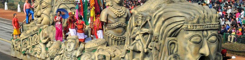 The tableau of Tripura passes through the Rajpath during the full dress rehearsal for the Republic Day Parade-2016, in New Delhi on January 23, 2016.