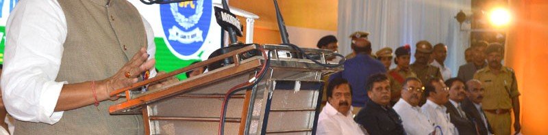 The Union Home Minister, Shri Rajnath Singh addressing at the anniversary celebrations of the Student Cadet Scheme of Kerala government, in Thiruvananthapuram on January 27, 2016. The Kerala Home Minister, Shri Ramesh Chennithala is also seen