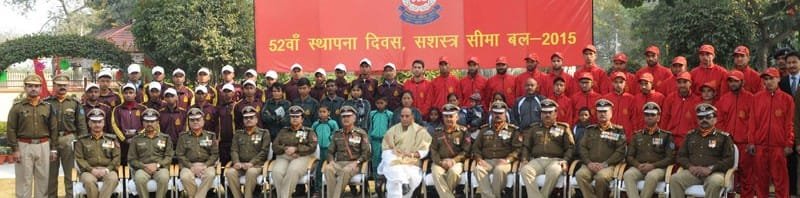 The Union Home Minister, Shri Rajnath Singh in a group photograph at the 52nd anniversary parade of the Sashastra Seema Bal, in New Delhi on December 24, 2015.