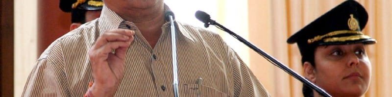 The Union Minister for Defence, Shri Manohar Parrikar addressing the gathering after inaugurating the Special Exhibition on 1965 Indo-Pak War, at India Gate, in New Delhi on September 15, 2015.