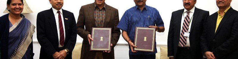 The Union Minister for Defence, Shri Manohar Parrikar and the Chairman, Wadhwani Foundation, Dr. Romesh Wadhwani signed an MoU, in New Delhi on February 19, 2016. The Secretary Defence Production, Shri A.K. Gupta and the Secretary (ESW), Shri Prabhu Dayal Meena are also seen.