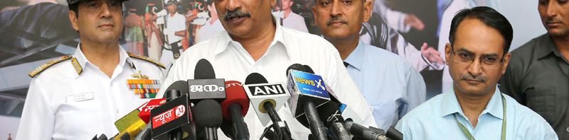 The Union Minister for Defence, Shri Manohar Parrikar interacting with the media, during the Naval Commanders’ conference, in New Delhi on April 21, 2016. The Chief of Naval Staff, Admiral R.K. Dhowan is also seen.