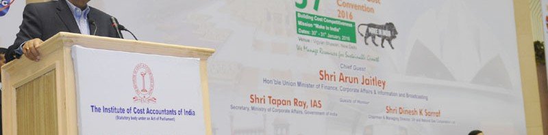 The Union Minister for Finance, Corporate Affairs and Information & Broadcasting, Shri Arun Jaitley addressing at the 57th National Cost Convention (NCC-2016), organised by the Institute of Cost Accountants of India on the theme “Building Cost Competiveness – Mission ‘Make in India’, in New Delhi on January 30, 2016.