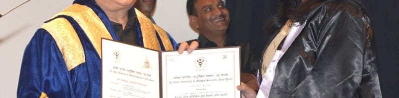 The Union Minister for Health & Family Welfare, Shri J.P. Nadda gave away the certificate to student, at the 43rd Annual Convocation of AIIMS, in New Delhi on October 18, 2015.