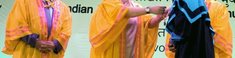 The Union Minister for Human Resource Development, Smt. Smriti Irani presenting the Director’s gold medal to Shri Pratik Nayak, at the 4th convocation of IIT Bhubaneswar, in Odisha on September 12, 2015.