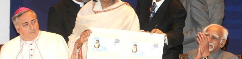 The Union Minister for Minority Affairs, Dr. Najma A. Heptulla releasing the Commemorative Stamp, at the Birth Centenary Celebrations of His Grace Most Rev. Dr. Benedict Mar Gregorios, in New Delhi on February 15, 2016. The Vice President, Shri M. Hamid Ansari is also seen.