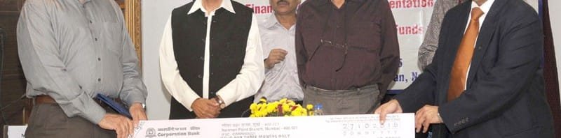 The Union Minister for Railways, Shri Suresh Prabhakar Prabhu witnessing the handing over the first cheque of Rs. 2000 crore by the Life Insurance Corporation (LIC) to the Railway PSU Indian Railway Finance Corporation (IRFC) towards financial assistance to Railways, in New Delhi on October 27, 2015. The Chairman, Railway Board, Shri A.K. Mital is also seen.