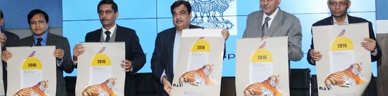 The Union Minister for Road Transport & Highways and Shipping, Shri Nitin Gadkari launching the Ministry’s calendar, in New Delhi on December 30, 2015. The Secretary, Ministry of Road Transport and Highways, Shri Vijay Chibber, the Secretary, Ministry of Shipping, Shri Rajive Kumar and other dignitaries are also seen.
