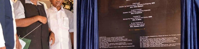 The Union Minister for Road Transport & Highways and Shipping, Shri Nitin Gadkari unveiling the plaque at the ground breaking ceremony of the Vizhinjam International Deepwater Multipurpose Seaport project, at Vizhinjam, in Thiruvananthapuram, Kerala on December 05, 2015.