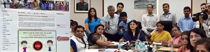 The Union Minister for Women and Child Development, Smt. Maneka Sanjay Gandhi launching the POCSO e-box, in New Delhi on August 26, 2016. The Minister of State for Women and Child Development, Smt. Krishna Raj, the Secretary, Ministry of Women and Child Development, Ms. Leena Nair and other dignitaries are also seen.