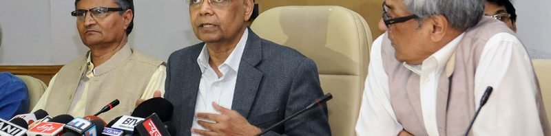 The Vice Chairman, NITI Aayog, Dr. Arvind Panagariya briefing the media on the Draft Action Agenda for Three Years, in New Delhi on April 25, 2017. The NITI Aayog Members, Shri Bibek Debroy and Prof. Ramesh Chand are also seen.