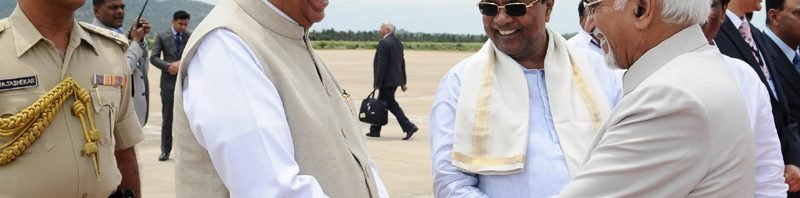 The Vice President, Shri M. Hamid Ansari being bid farewell by the Governor of Karnataka, Shri Vajubhai Rudabhai Vala, the Chief Minister of Karnataka, Shri Siddaramaiah at Mysuru Airport, in Mysuru on July 23, 2016.