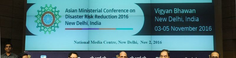 The Union Home Minister, Shri Rajnath Singh addressing a press conference on Asian Ministerial Conference for Disaster Risk Reduction (AMCDRR), 2016, in New Delhi on November 02, 2016. The Minister of State for Home Affairs, Shri Kiren Rijiju, the Director General (M&C), Press Information Bureau, Shri A.P. Frank Noronha and other dignitaries are also seen