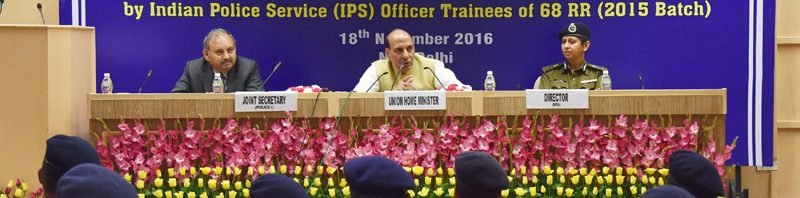 The Union Home Minister, Shri Rajnath Singh interacting with the Indian Police Service (IPS) Officer Trainees of 68 RR (2015 batch), in New Delhi on November 18, 2016.