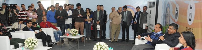 The Union Minister for Electronics & Information Technology and Law & Justice, Shri Ravi Shankar Prasad interacting with the media at the DigiDhan Mela – an awareness camp, organised by the Ministry of Electronics and Information Technology (MeitY), in New Delhi on December 17, 2016. The Union Minister for Science & Technology and Earth Sciences, Dr. Harsh Vardhan and the Secretary, Ministry of Electronics & Information Technology, Ms. Aruna Sundararajan are also seen